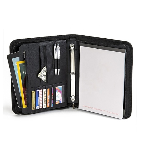 A4 PU deri fermuarlı İş portföyü konferans dosya klasörü evrak çantası organizatör kolu ile 3 halka padfolio portföy