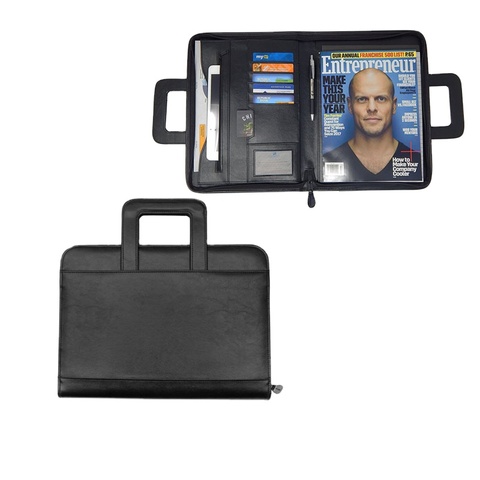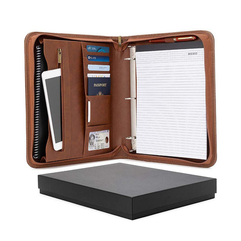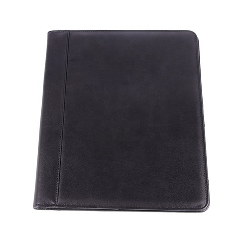 Toptan yüksek kalite hakiki deri katlanmış Padfolio özel yönetici fermuarlı promosyon iş A4 PU deri portföy