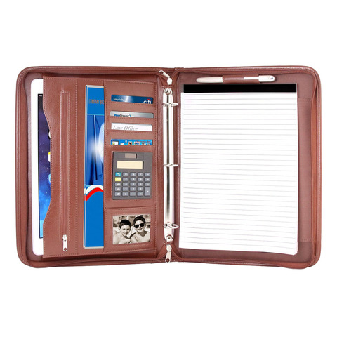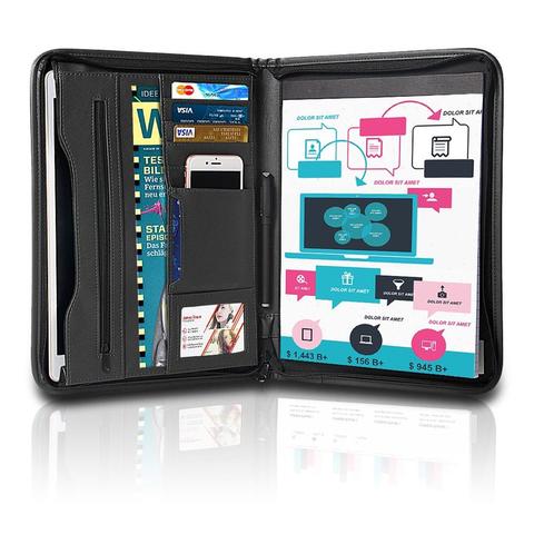 Portföy deri portföy dosya klasörü organizatör Ipad A4 PU deri Padfolio Binder fermuarlı Padfolio portföy klasörü